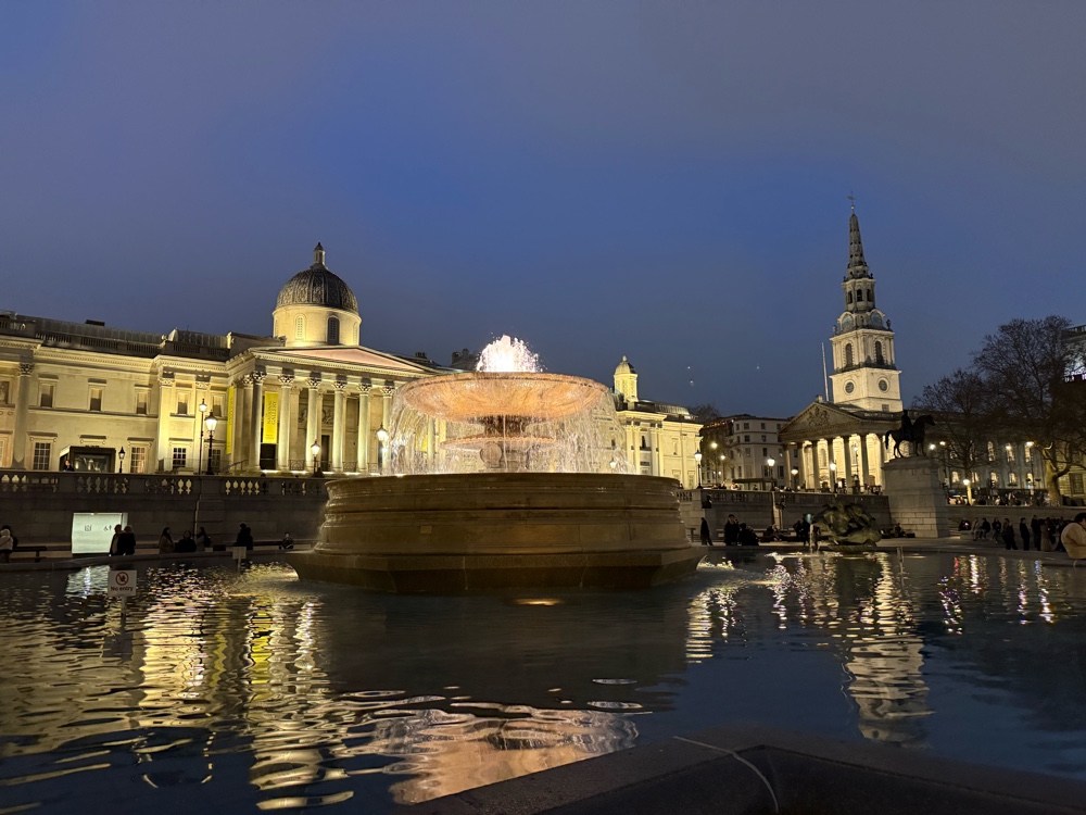Once back at the hotel I fell fast asleep and had a dream that I had been hit by a fire truck and pinned inside my car. If Bryan were alive I am sure he would tell me what that dream says about me. Once I was fully awake we headed to Trafalgar Square. We didn’t realize it was so close. We walked around and looked at all the statues. Alas, there were no pigeons on any statue heads.