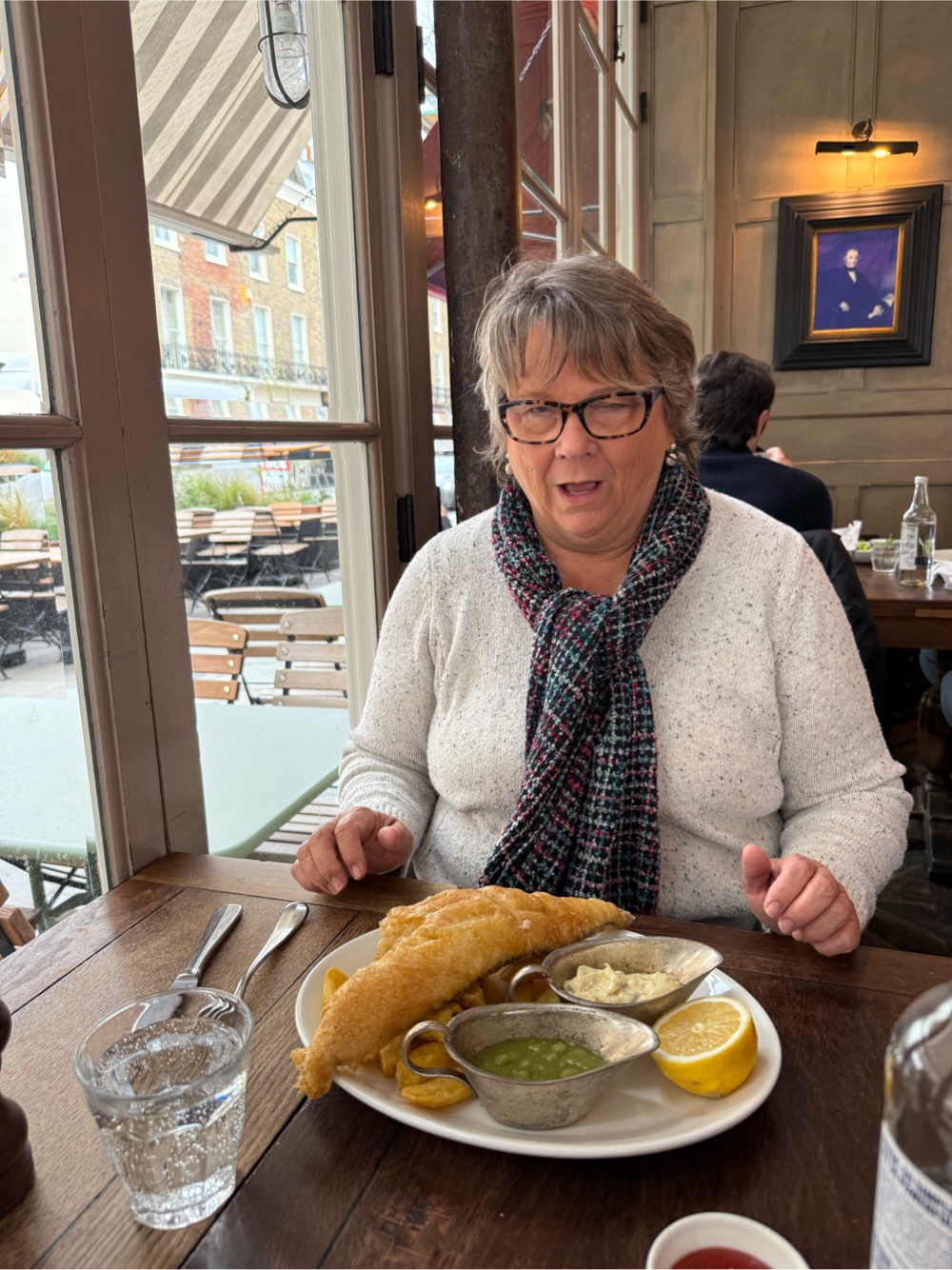 Linda and I headed to the borough of Belgravia in search of a pub that served fish & chips. You can’t come to London without some fish & chips. We ate at Thomas Cubitt and the fish was excellent…..and so very large!