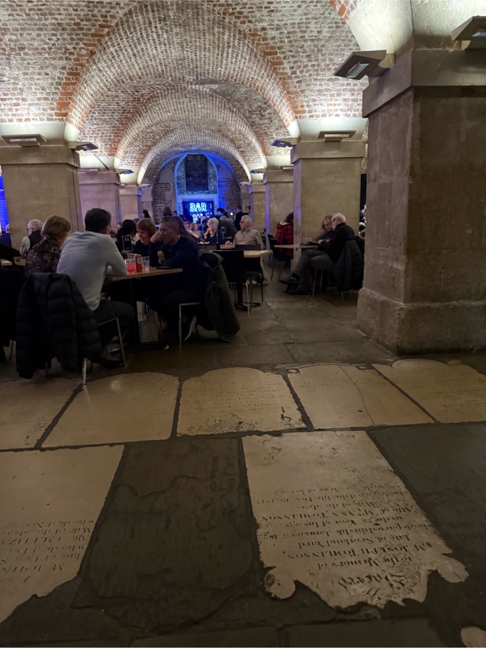 This is a photo of the crypt where you walk over the burial sites of Thomas Chippendale (the furniture maker not the male stripper), Nell Gwynne, actress and mistress of King Charles II and many more.