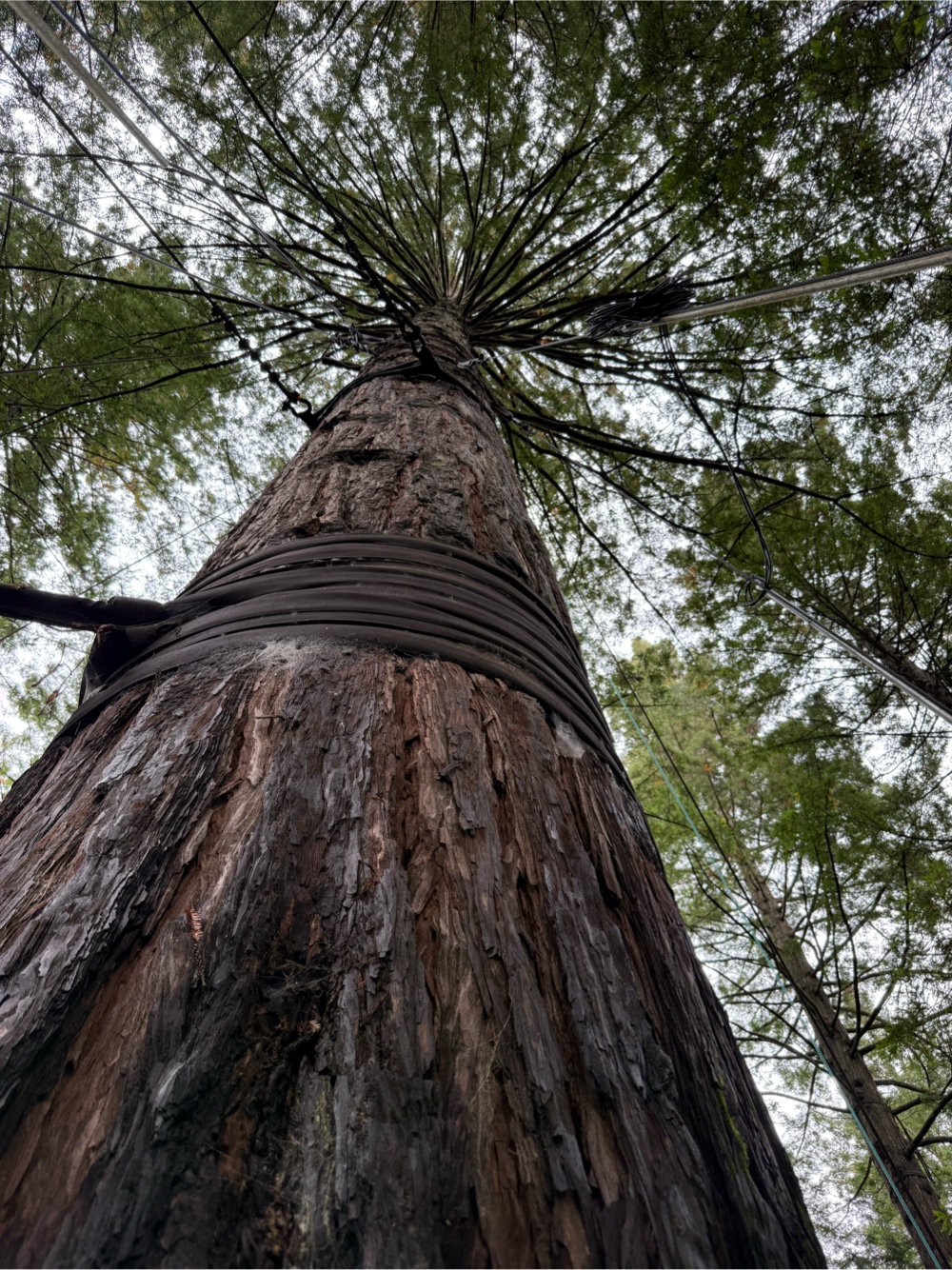 A specialist climbing team from Germany was brought in to aid in the construction of the treewalk. The walkway is suspended from the trees using a specially designed sling that wraps around the Redwood trunks without causing harm to the trees. The slings can be easily adjusted to allow for the growth of the trees.