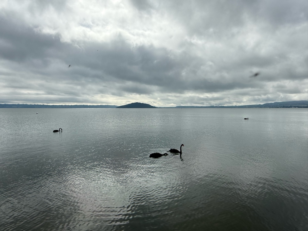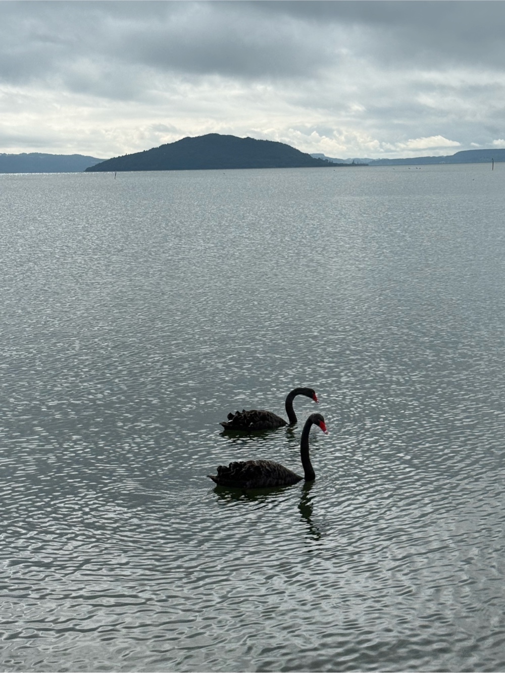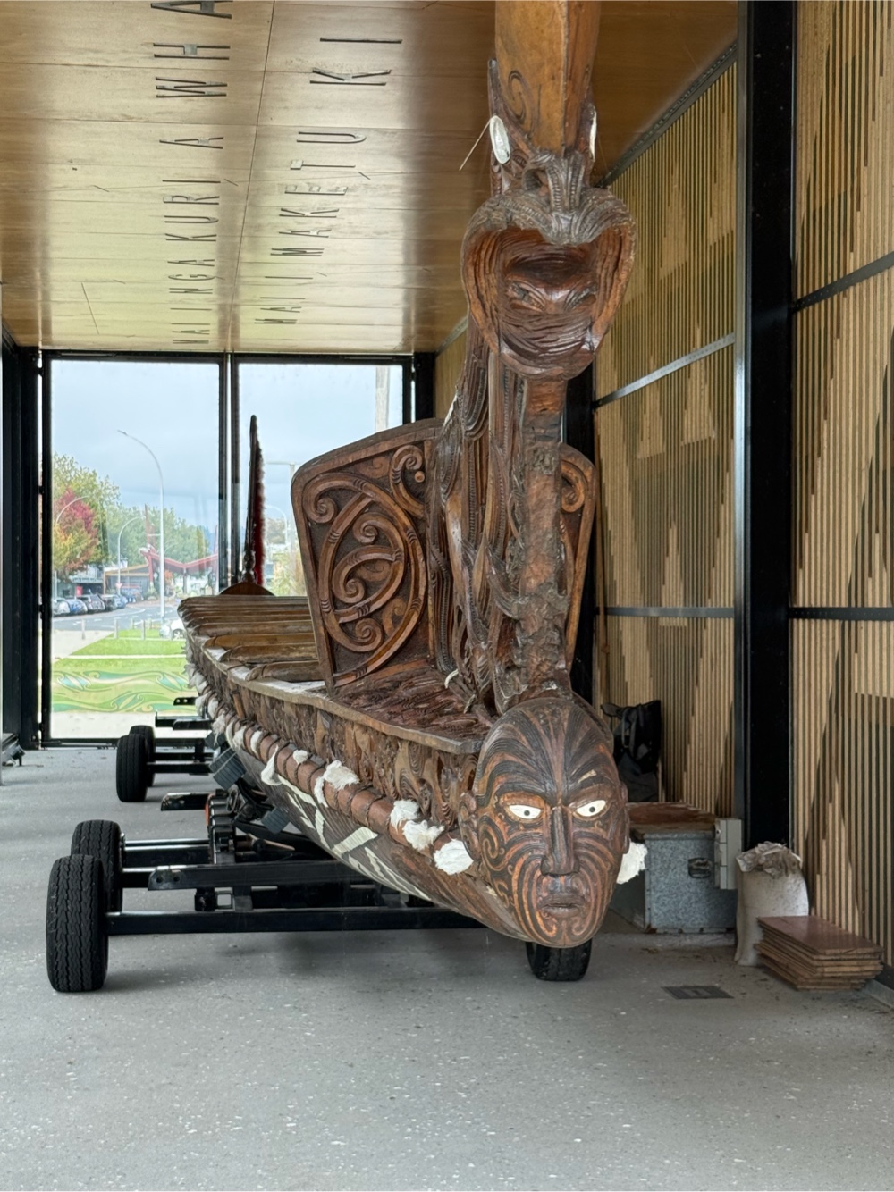 We realized last night that we are right around the corner from Lake Rotorua, the largest lake in the Southern Hemisphere. We can’t leave here without seeing it. So we headed down to see it. We found this Māori war canoe memorial.