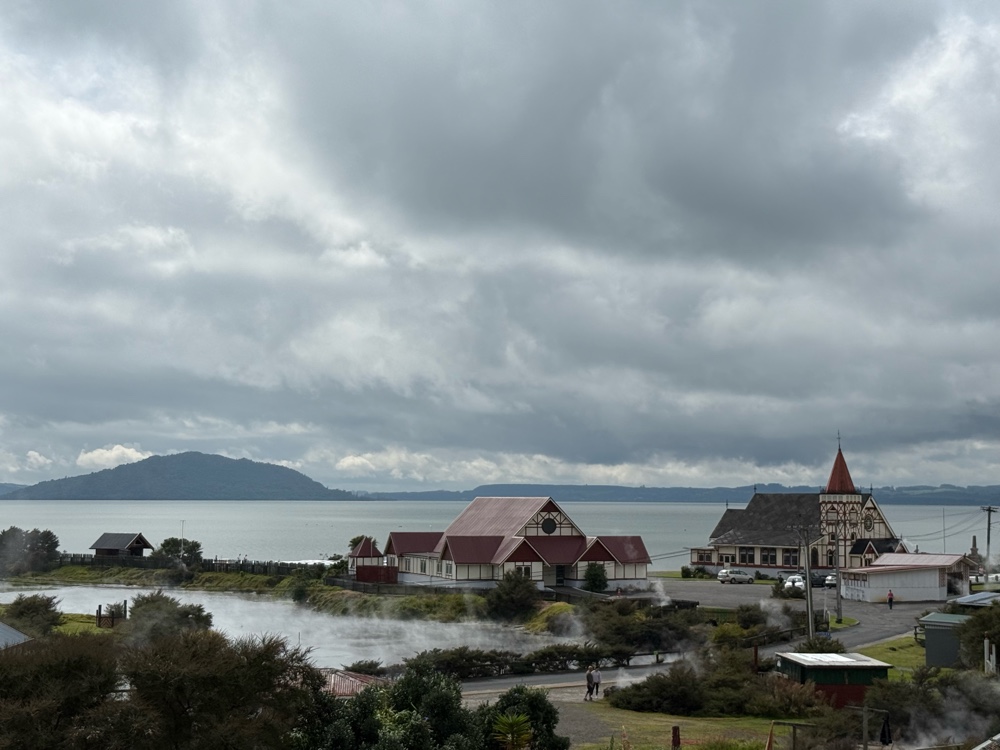 Our guide at Hobbiton yesterday told us about a church in Rotorua with a stained glass of a Māori Jesus. I looked it up last night and it looked like a white Jesus with traditional Māori clothing. It didn’t have visiting hours available during the Fall months. We did see the church in its beautiful setting on the lake.