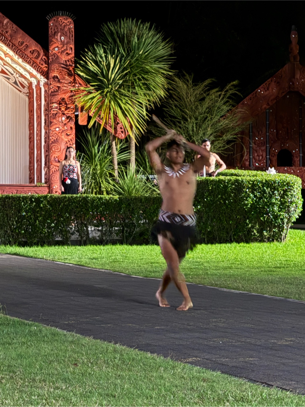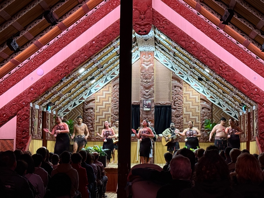 After dinner we were ushered to the community building for a performance of Maori culture, which began with a member of the audience being named our chief and becoming part of a ritual of accepting a peace symbol from a Maori warrior.