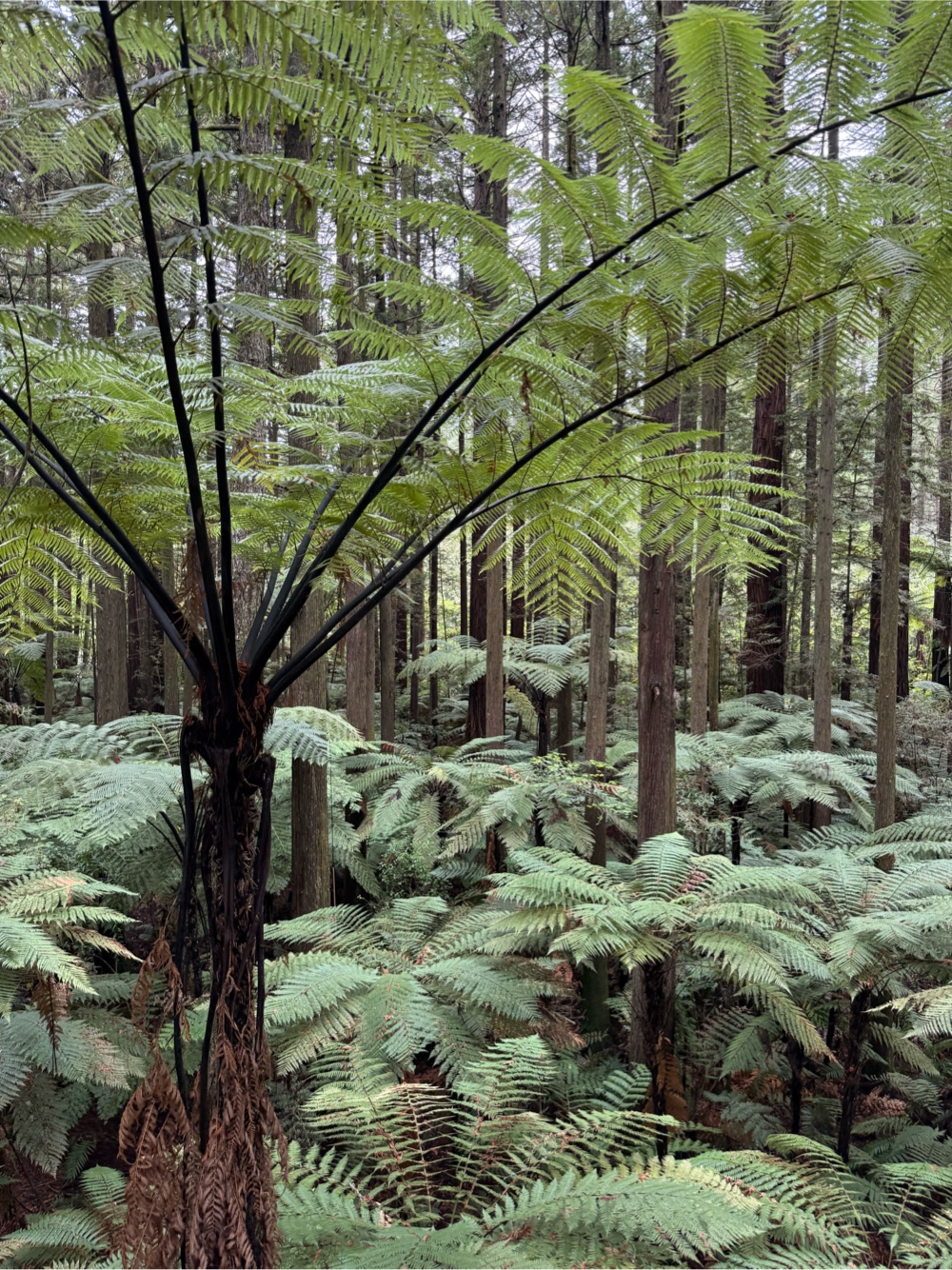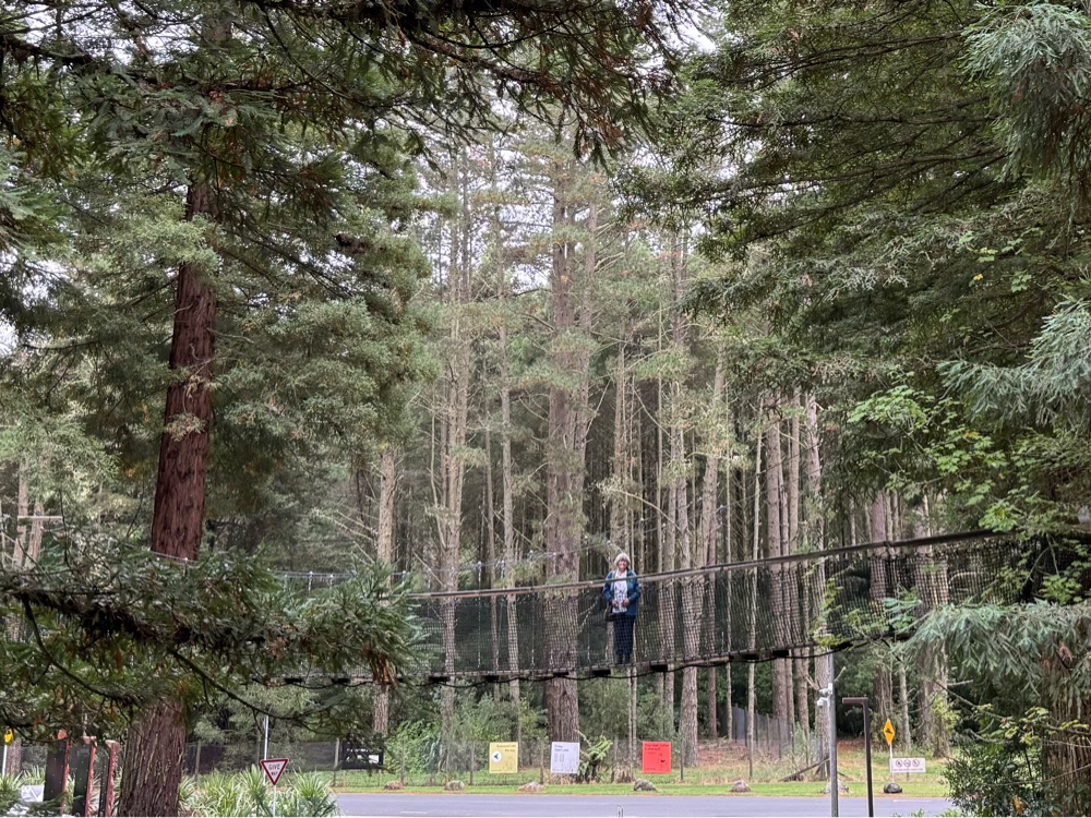 We headed for the Redwood Tree Walk and Glowworm experience. The Redwood Tree Walk is walk through the Redwood trees 20 yards up, 7 1/2 football fields long with 28 suspension bridges. Gayle knew she wasn’t going to be able to walk that far so she headed in the wrong direction so she could go a short distance and wait for me to come around. This is Gayle disobeying the rules.