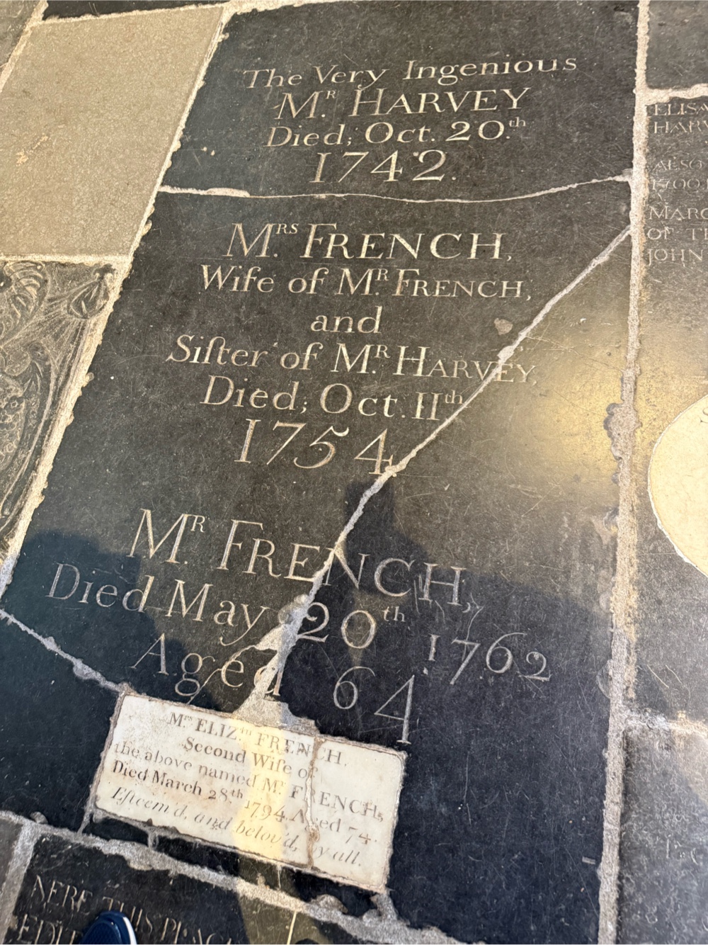 …with over 800 people entombed in its walls and floors. I especially loved this stone which speaks of Mrs. French as the ingenious Mr. Harvey’s “sifter”. It took some research to learn that a sifter is someone that uses some intense scrutiny and criticism to help someone sift out the bad from the good to become a better person.