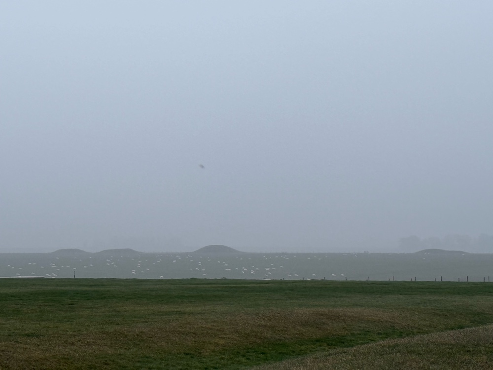 On the far hills (in a far circle around the stones) we could just make out burial mounds.
