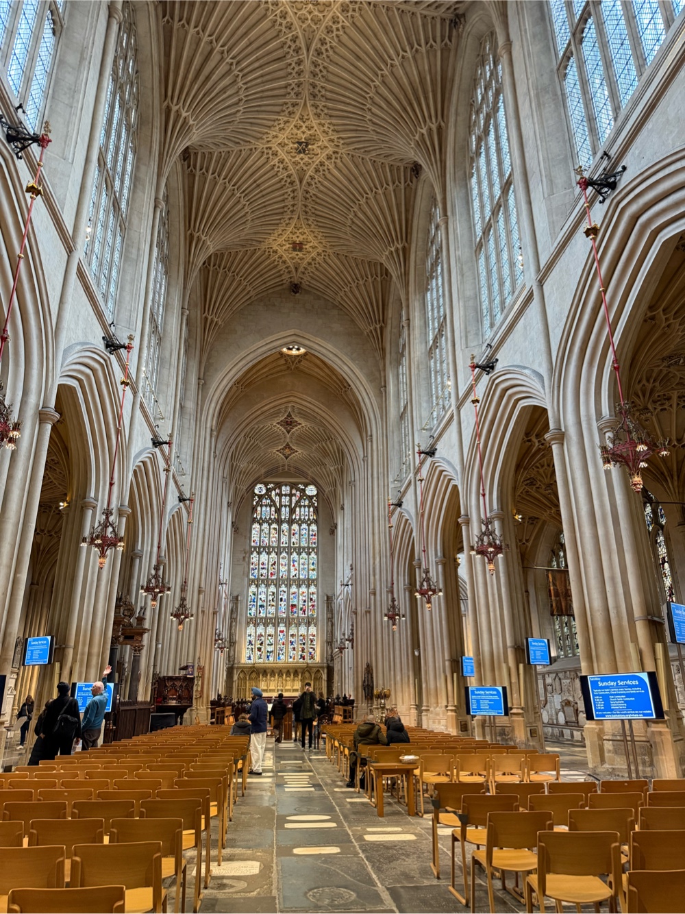 We did not sign up for the tour of the Roman baths and museum. Instead we headed into the Bath Abbey. Anybody who travels with me knows that I am a sucker for a church tour. It is a beautiful church…
