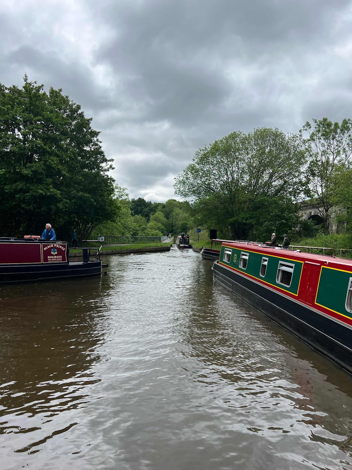 Directly after the Chirk tunnel was the Chirk Aqueduct. In the small area between the tunnel and the aqueduct there was a queue going each direction and it was absolute chaos. Kara went ahead to help and found people yelling and gesturing.