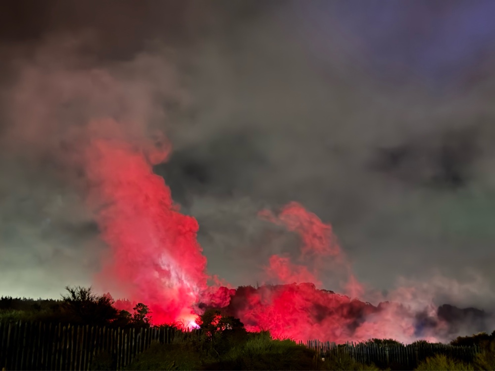 Just as we were turning off the main road to drive the final two blocks back to our hotel we saw the sky light up with lasers pointed at the steam of the geysers. I turned around and found a parking lot where we could get a better view of the light show.