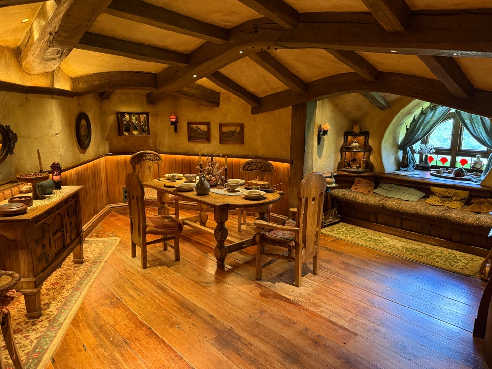 We got to enter into a home designed to reflect the daily lives and culture of the Hobbits. The living room…